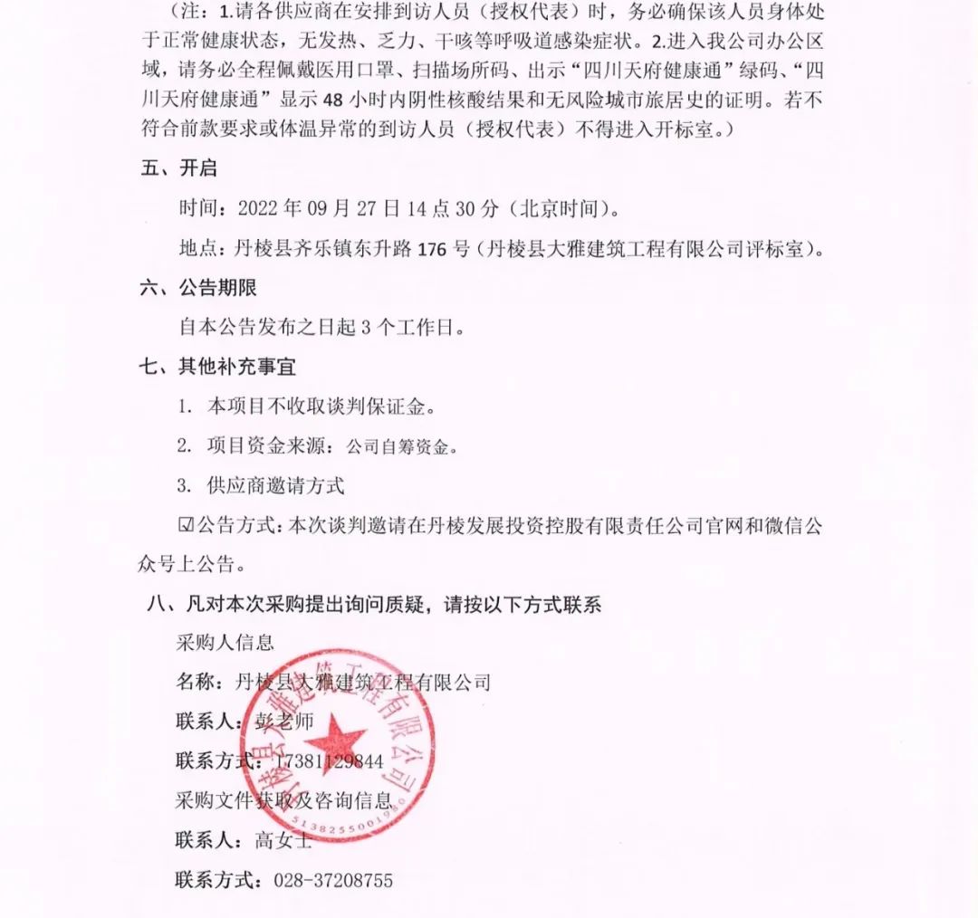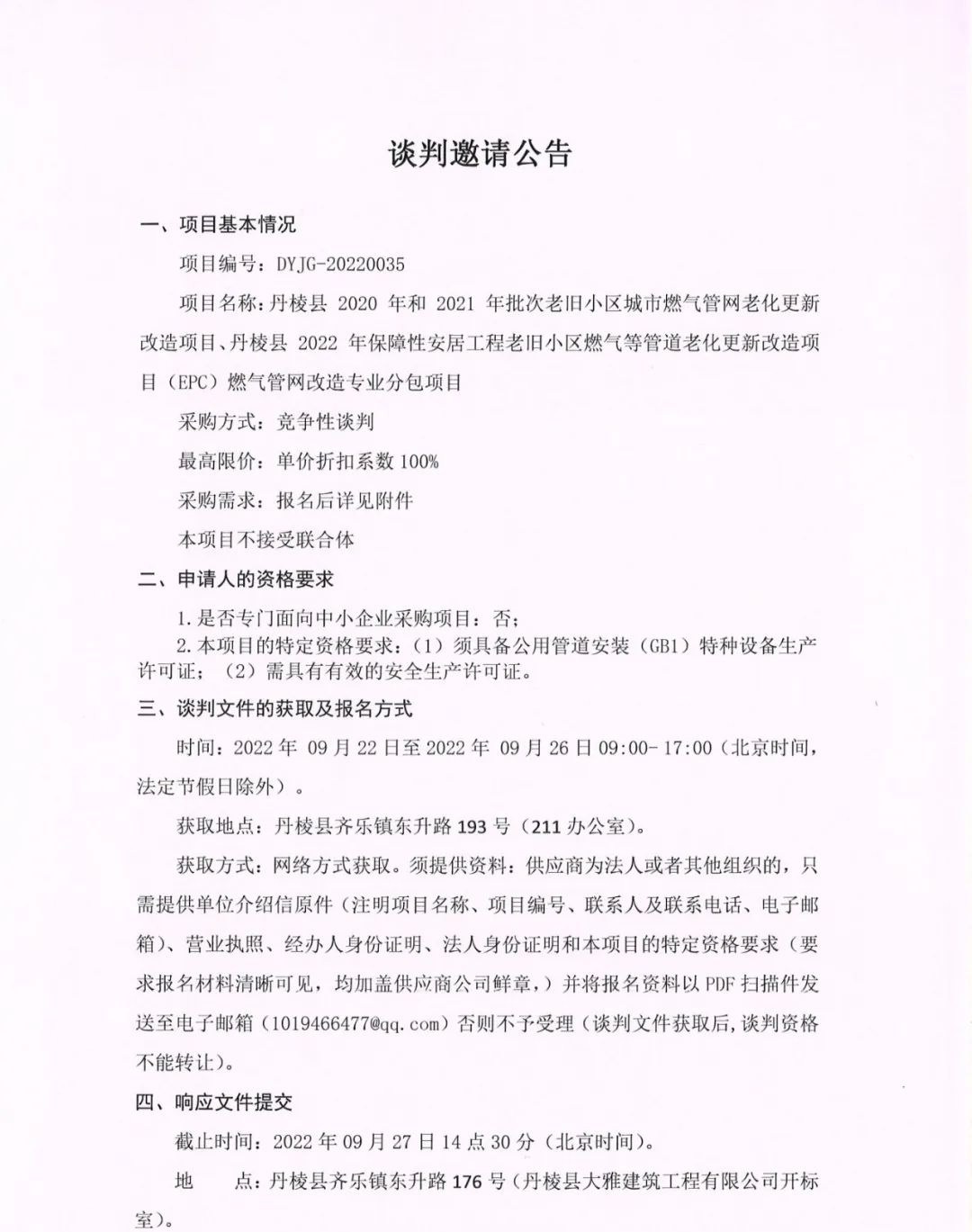 丹棱縣 2020 年、2021年及2022年批次老舊小區(qū)城市燃?xì)夤芫W(wǎng)老化更新改造項(xiàng)目燃?xì)夤芫W(wǎng)改造專業(yè)分包項(xiàng)目談判邀請(qǐng)公告
