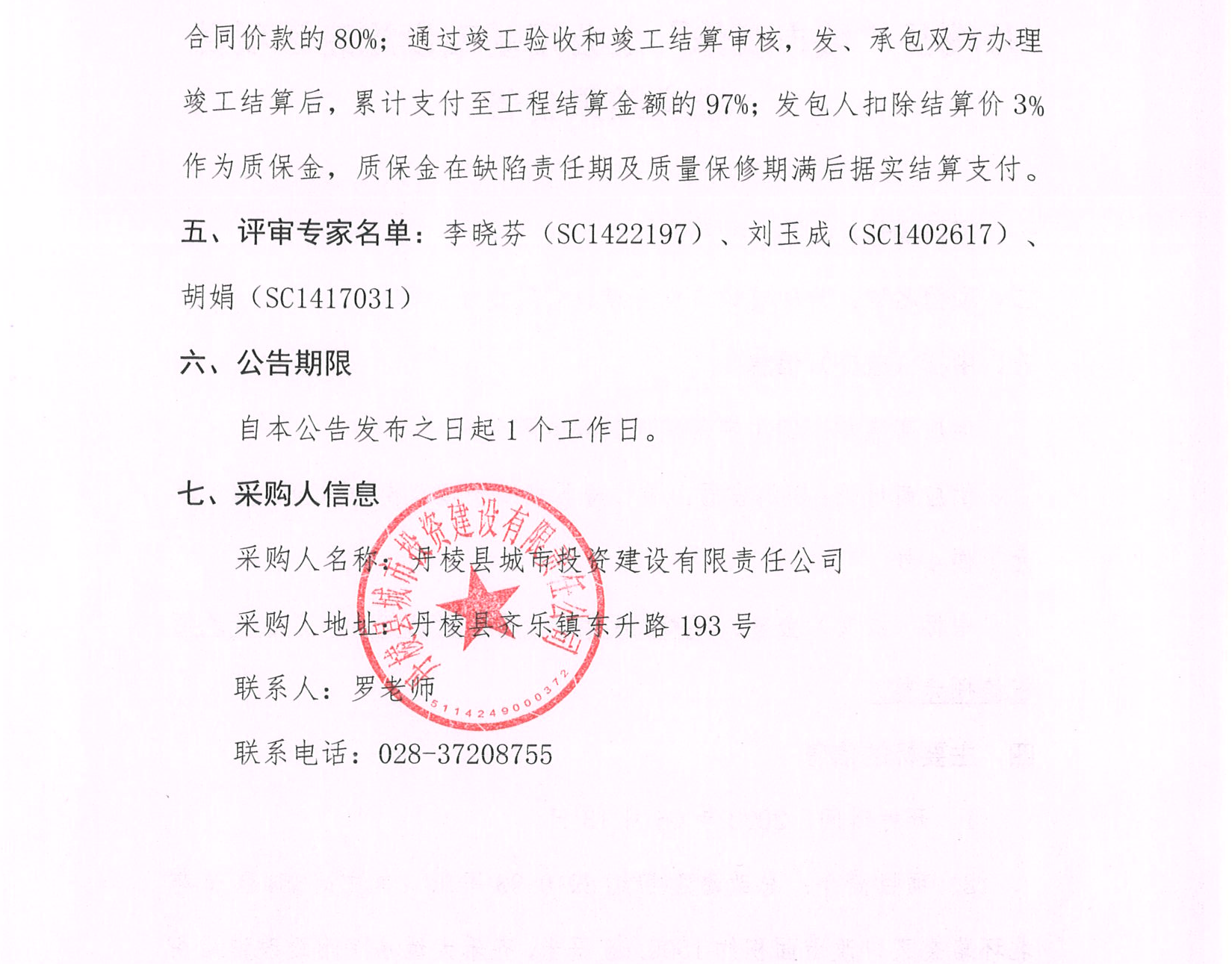 丹棱縣“城市雙修”之公用基礎(chǔ)設(shè)施建設(shè)項目成交結(jié)果公告
