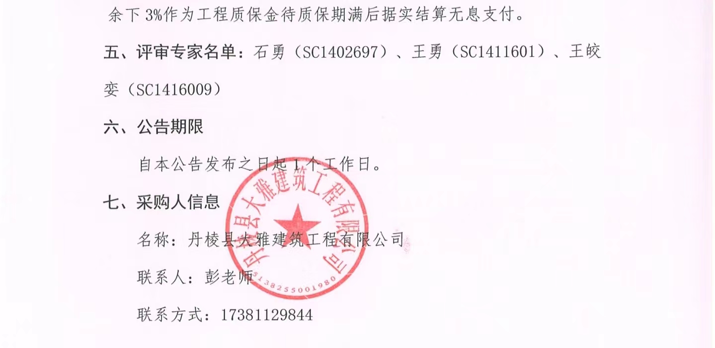 丹棱縣熊河碥片區(qū)市政基礎(chǔ)設(shè)施建設(shè)項(xiàng)目一期(城市雙修)設(shè)計(jì)施工總承包(EPC)衛(wèi)生間幕墻專業(yè)分包項(xiàng)目成交結(jié)果公告