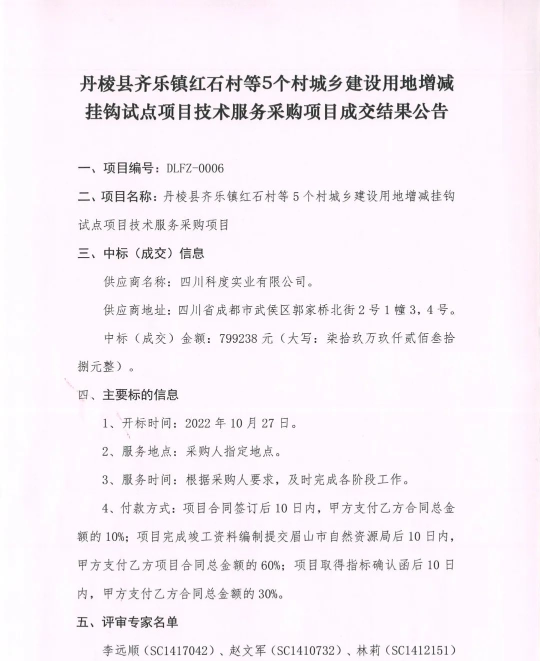 丹棱縣齊樂鎮(zhèn)紅石村等5個村城鄉(xiāng)建設用地增減掛鉤試點項目技術(shù)服務采購項目成交結(jié)果公告
