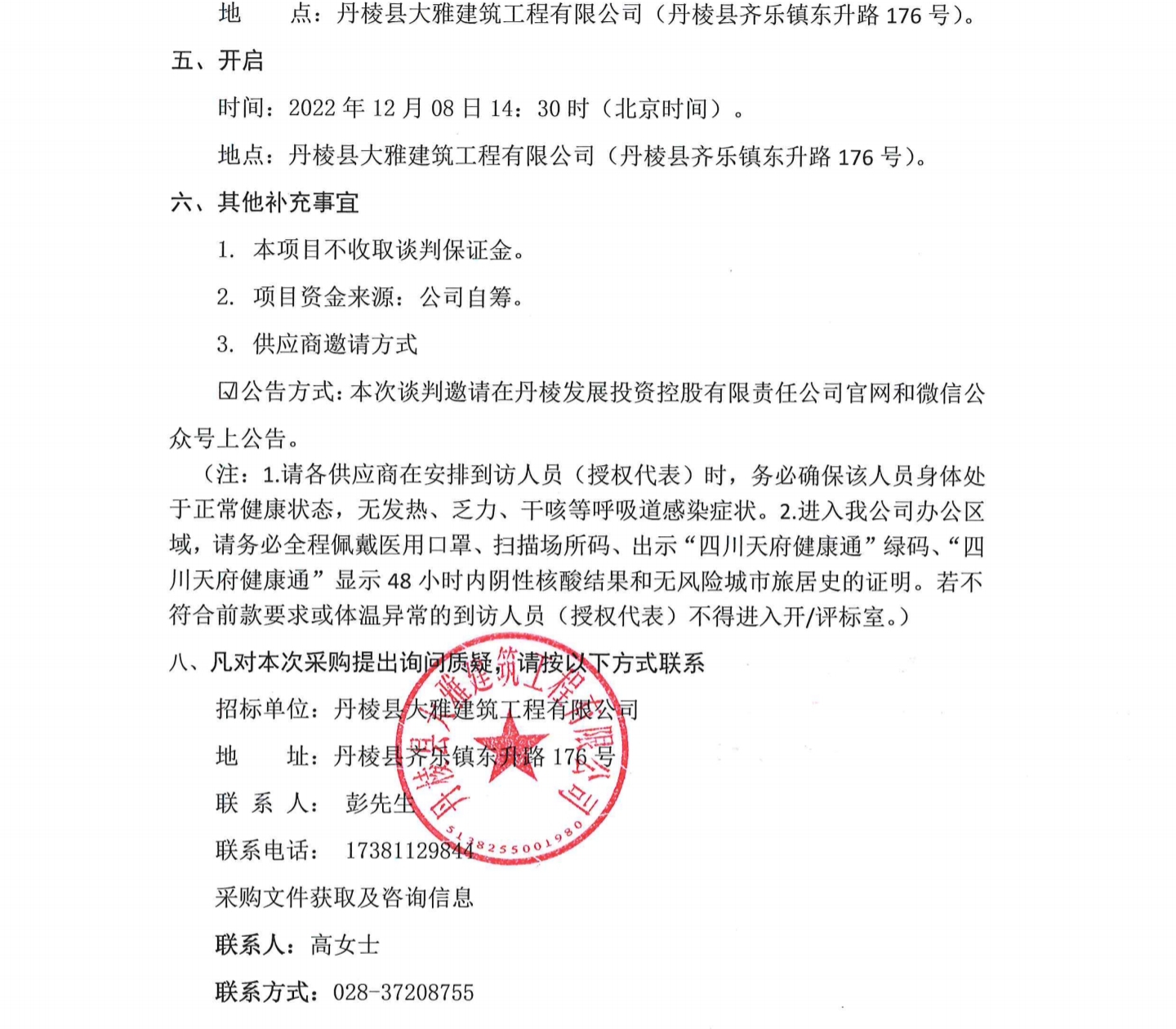 丹棱縣食品園區(qū)建設項目 (一期)--丹樓凍把產(chǎn)業(yè)園建設項目設計、施工、采購總承包 (EPC) 電梯采購及安裝采購項目 (第二次)談判邀請公告