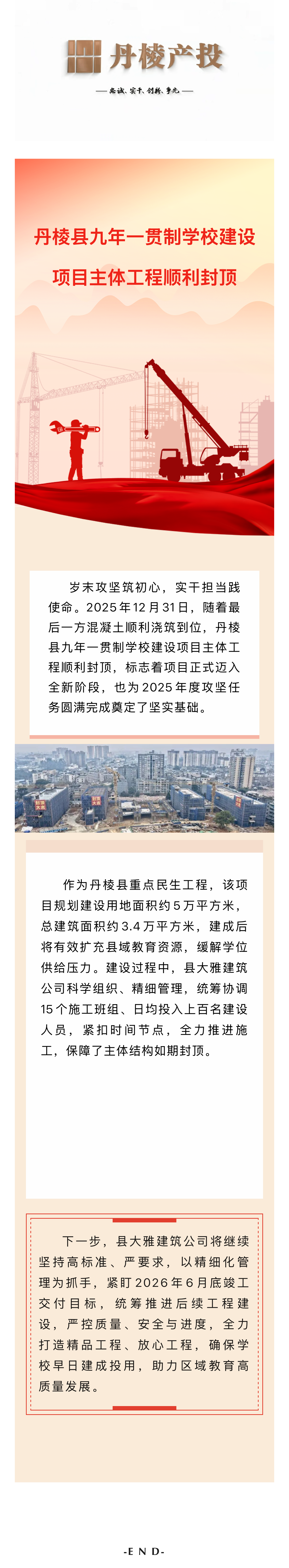 【縣大雅建筑公司】筑跡:丹棱縣九年一貫制學校建設項目主體工程順利封頂