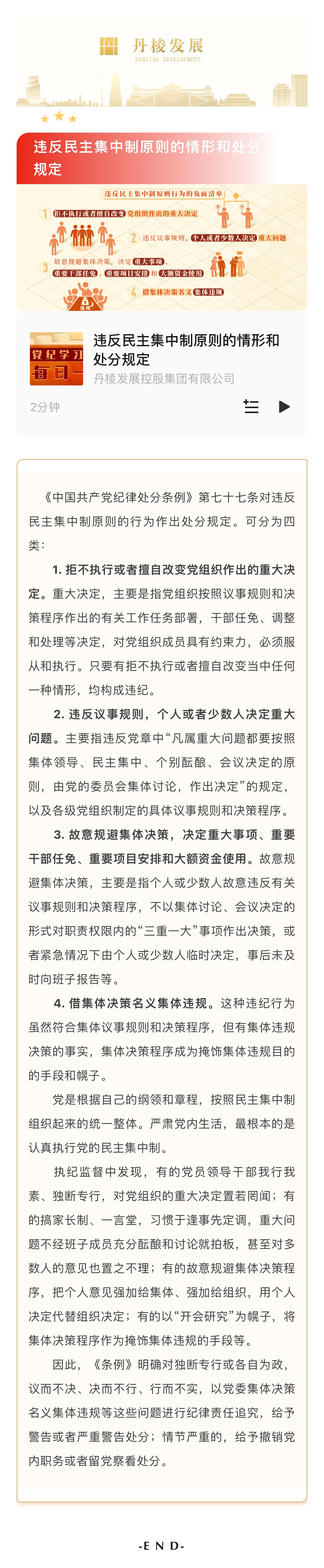 【黨紀(jì)學(xué)習(xí)教育】每日一課丨違反民主集中制原則的情形和處分規(guī)定